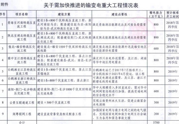分析9項(xiàng)重點(diǎn)工程發(fā)現(xiàn),一是核準(zhǔn)開(kāi)工時(shí)間集中在2018年第四季度和2019年,較為緊迫。二是主要項(xiàng)目類型都為直流、交流特高壓工程,旨在將西北、西南清潔能源送往江蘇、浙江等電力負(fù)荷中心。