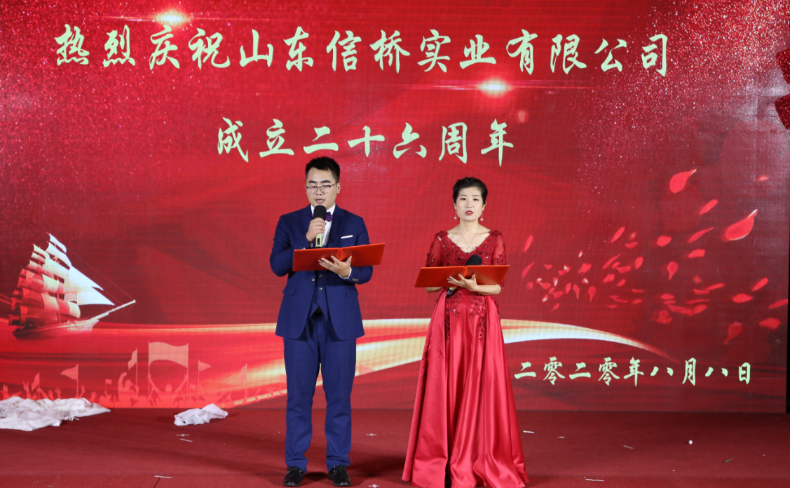 2020年8月8日,山東信橋?qū)崢I(yè)有限公司二十六周年慶典在泰安帝苑酒店隆重舉行。各路榜樣精英、以及二十六年來(lái)給予信橋厚愛(ài)的各級(jí)領(lǐng)導(dǎo)、各位同仁、新老朋友在這里歡聚一堂,與為公司付出辛勤勞動(dòng)的全體員工一起,分享屬于大家的光榮與快樂(lè)!