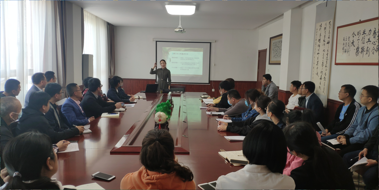 5月5號(hào),為提高公司整體形象,提高員工業(yè)務(wù)水平,公司請(qǐng)禮儀老師來(lái)公司培訓(xùn),經(jīng)過(guò)老師的講解,公司開始實(shí)施全體員工著裝得體的政策,周一至周五全部著西裝、皮鞋。