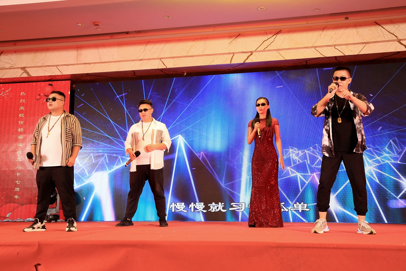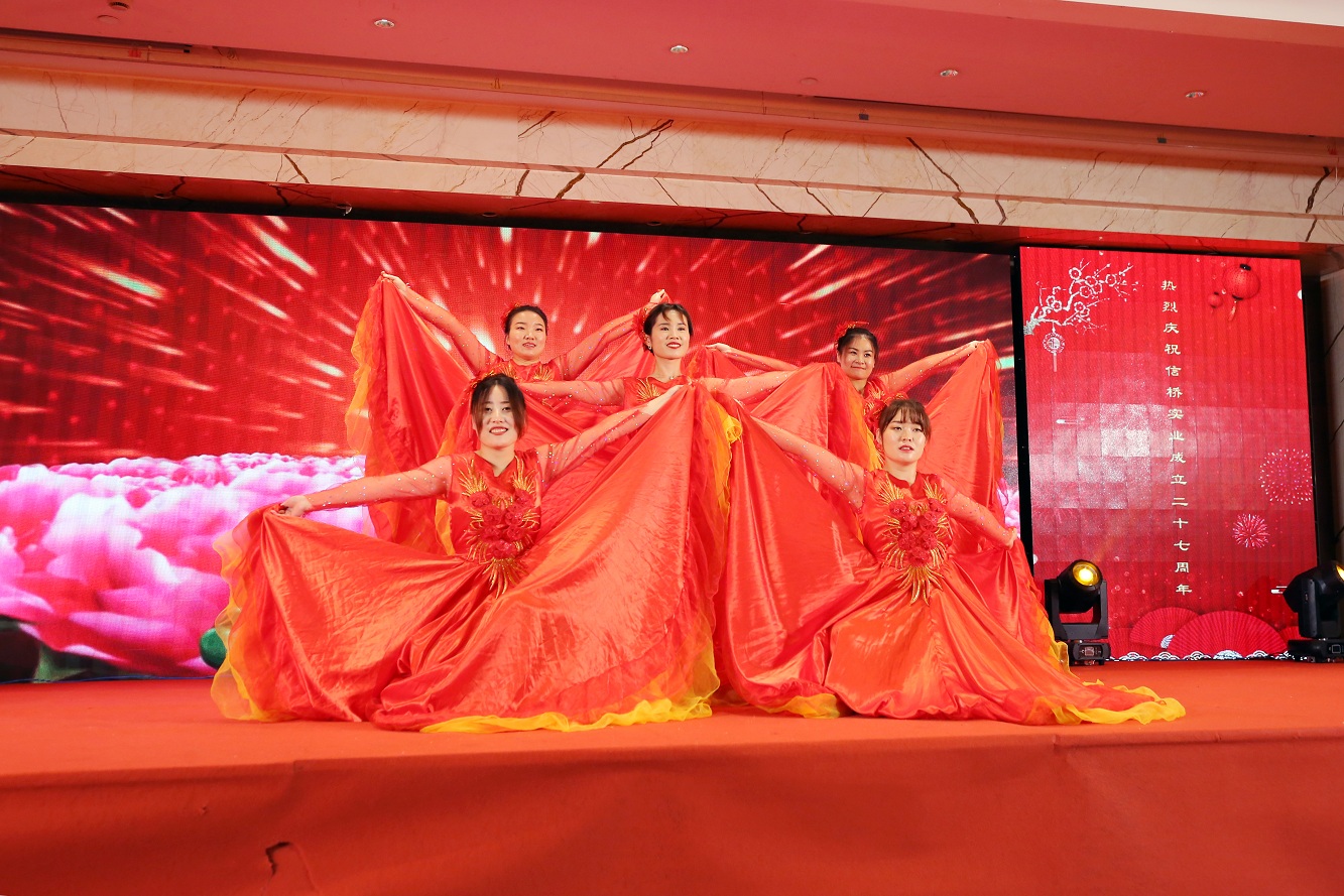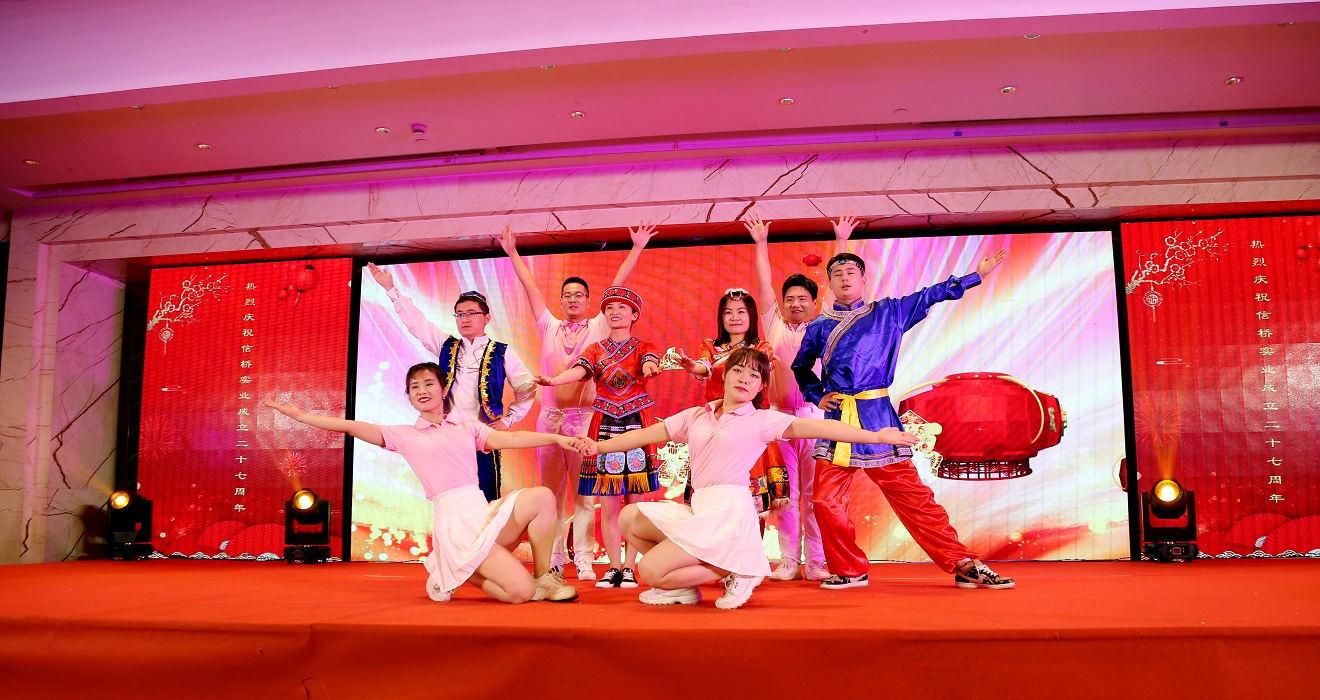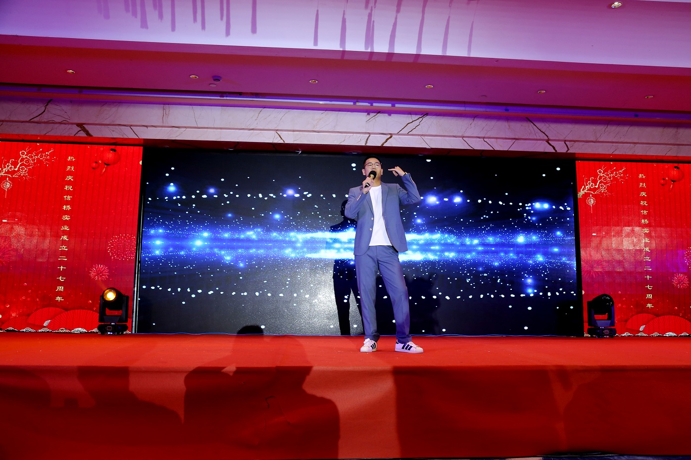 此次慶典晚宴參加人員除了信橋全體員工之外,還有部分老領(lǐng)導和老朋友,大家共同分享了信橋二十七周年的喜悅與精彩。八號上午,慶典開始之前,演員們辛勤排練,燈光師、音響師共同配合,所有人為了晚會都在努力。下午4點58分,晚會正式開始,全體員工與領(lǐng)導集體合影,信橋隊伍不斷在擴大。今年的晚會添加新的互動方式,采用了直播和紅包雨的新形式,是信橋周年慶典的一次新的嘗試。