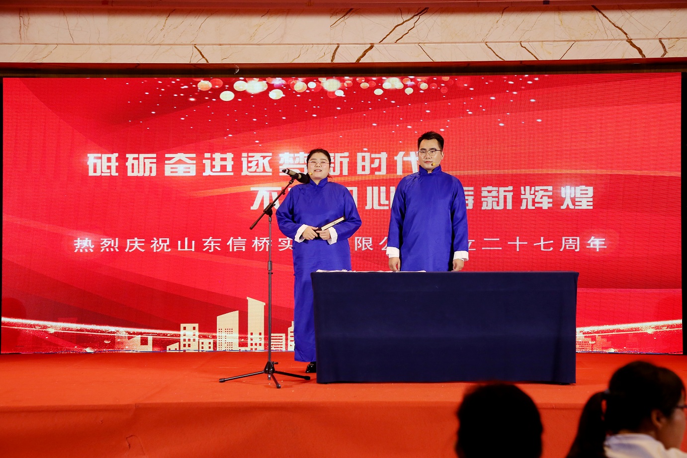 歲月如歌,風霜如畫,二十七年彈指一揮間,山東信橋?qū)崢I(yè)有限公司(以下簡稱山東信橋)迎來了二十七周年的生日。二十七年來,信橋人在激烈的市場競爭中奮力拼搏、砥礪前行,接受了市場風風雨雨的洗禮,取得了累累碩果。為了慶祝這一特殊的日子,2021年8月8日,以“拼搏進取,開創(chuàng)新時代”為主題的山東信橋二十七周年慶典活動在寶盛大酒店舉行。