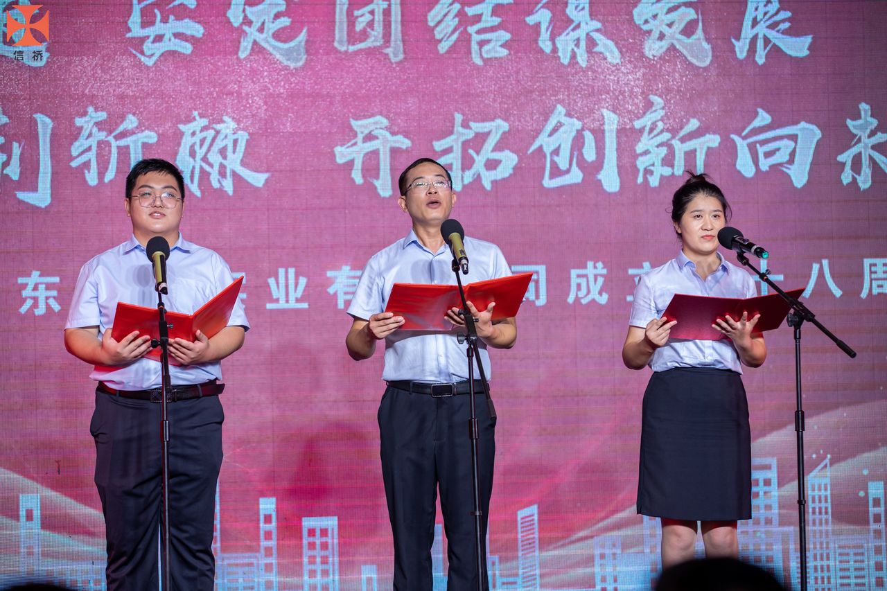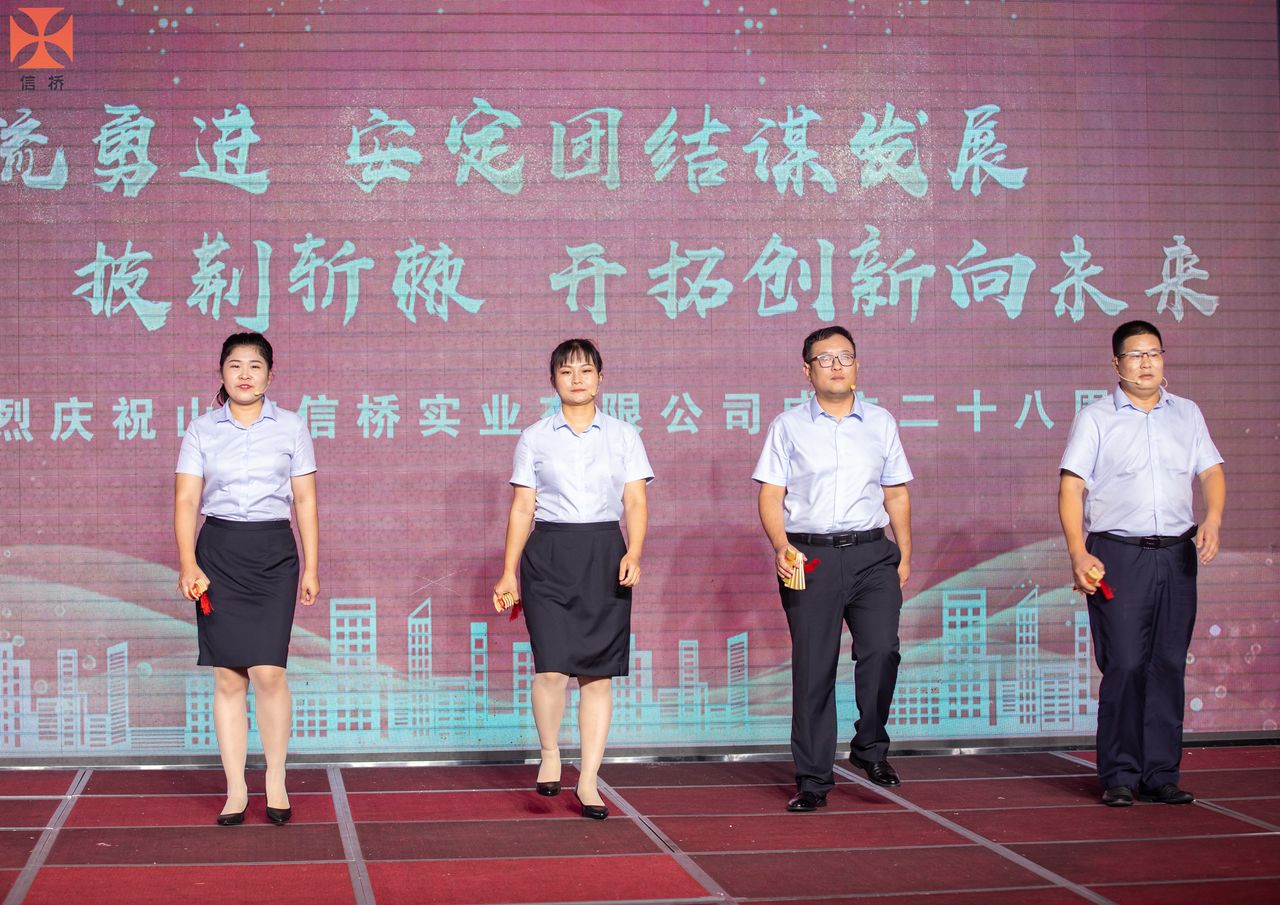 歲月如歌,風(fēng)霜如畫(huà),二十八年彈指一揮間,山東信橋?qū)崢I(yè)有限公司(以下簡(jiǎn)稱山東信橋)迎來(lái)了二十八周歲的生日。二十八年來(lái),信橋人在激烈的市場(chǎng)競(jìng)爭(zhēng)中奮力拼搏、砥礪前行,接受了市場(chǎng)風(fēng)風(fēng)雨雨的洗禮,取得了累累碩果。為了慶祝這一特殊的日子,2022年8月8日,以“激流勇進(jìn),安定團(tuán)結(jié)謀發(fā)展 披荊斬棘,開(kāi)拓創(chuàng)新向未來(lái)”為主題的山東信橋二十八周年慶典活動(dòng)在寶盛大酒店舉行。