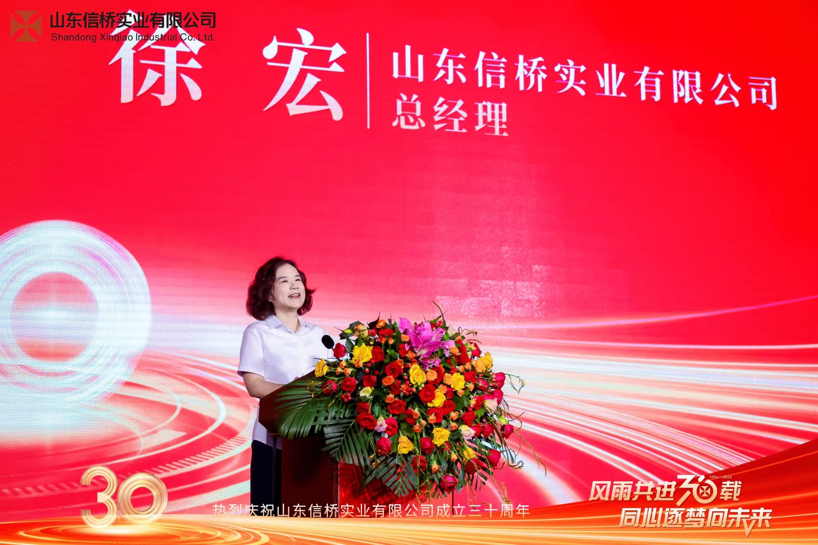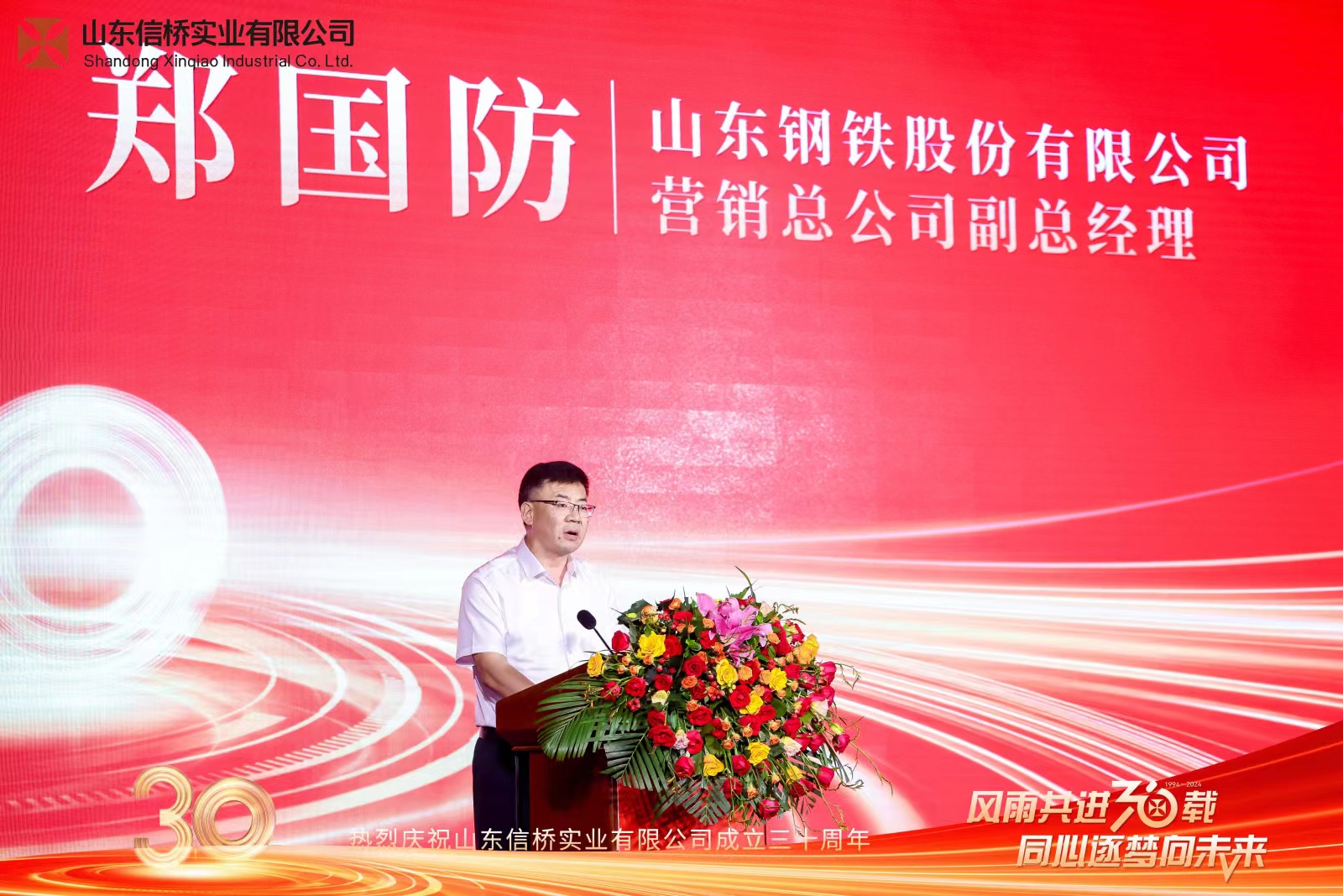 鄭總首先對信橋30周年慶典表示祝賀,并強調信橋公司在耐低溫和低合金型鋼以及角鋼等領域表現突出,為國內外重點工程、重要客戶提供了滿意的產品和服務,為塑造山鋼品牌做出巨大貢獻。最后對雙方合作做出美好展望。