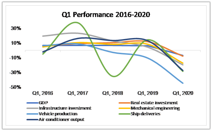Since the middle of February, the Chinese government has been urging enterprises from all walks of life to resume production quickly, safely and orderly. By the end of April, all state-owned enterprises had reached full capacity, but many small private enterprises had not yet returned to full capacity due to shrinking demand and lack of funds. In order to solve the economic downturn, the central government has launched a series of stimulus measures on a considerable scale.