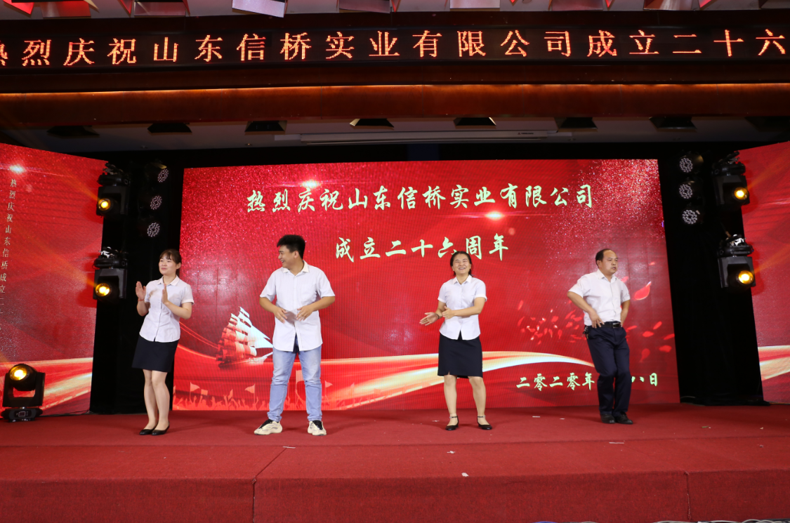 On August 8,2020, the twenty-six th anniversary of Shandong Xinqiao Industrial Co. , Ltd. was held in grand style at the Emperor Garden Hotel in Tai'an. Leaders, colleagues and friends, old and new, who have shown great love to Nobubashi for twenty-six long years, are gathered here with all the employees who have worked hard for the company, share the glory and happiness that belong to everyone! The year twenty-six of Sinbashi is the year twenty-six and the year twenty-six of development.